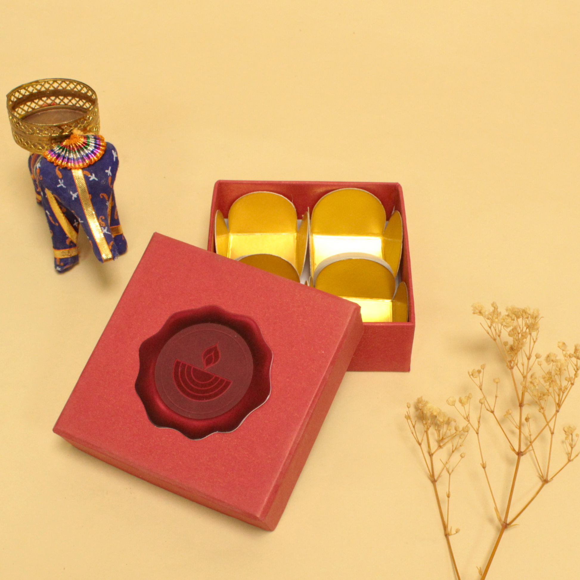 Elevate your Diwali gifting with our 4 Cavity Rigid Sweet/Chocolate Box, Designed for elegance and utility, this compact box is perfect for packaging homemade chocolates, dry fruits, or festive treats.